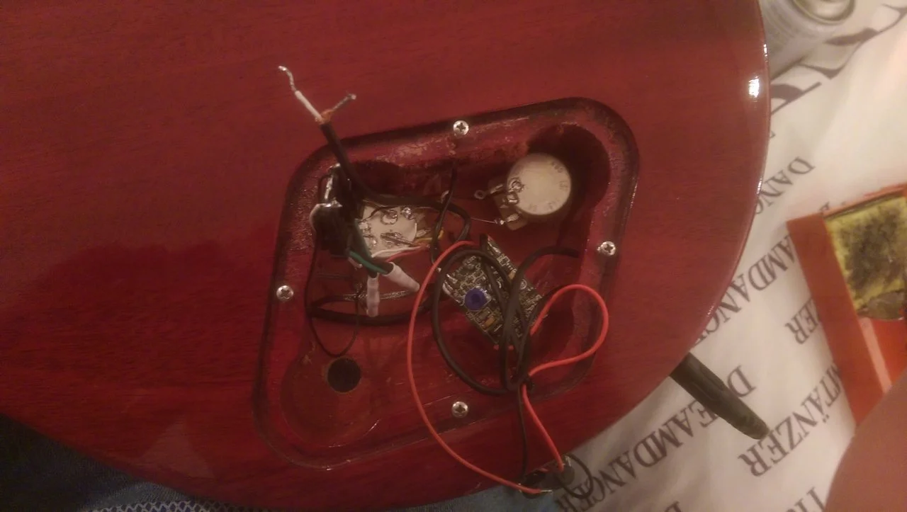 Die PUs haben ihre Quick Connect Stecker behalten, ich habe meine Kabel an eine 4polige Stiftleiste gelötet. Details seht ihr in den Bildern.