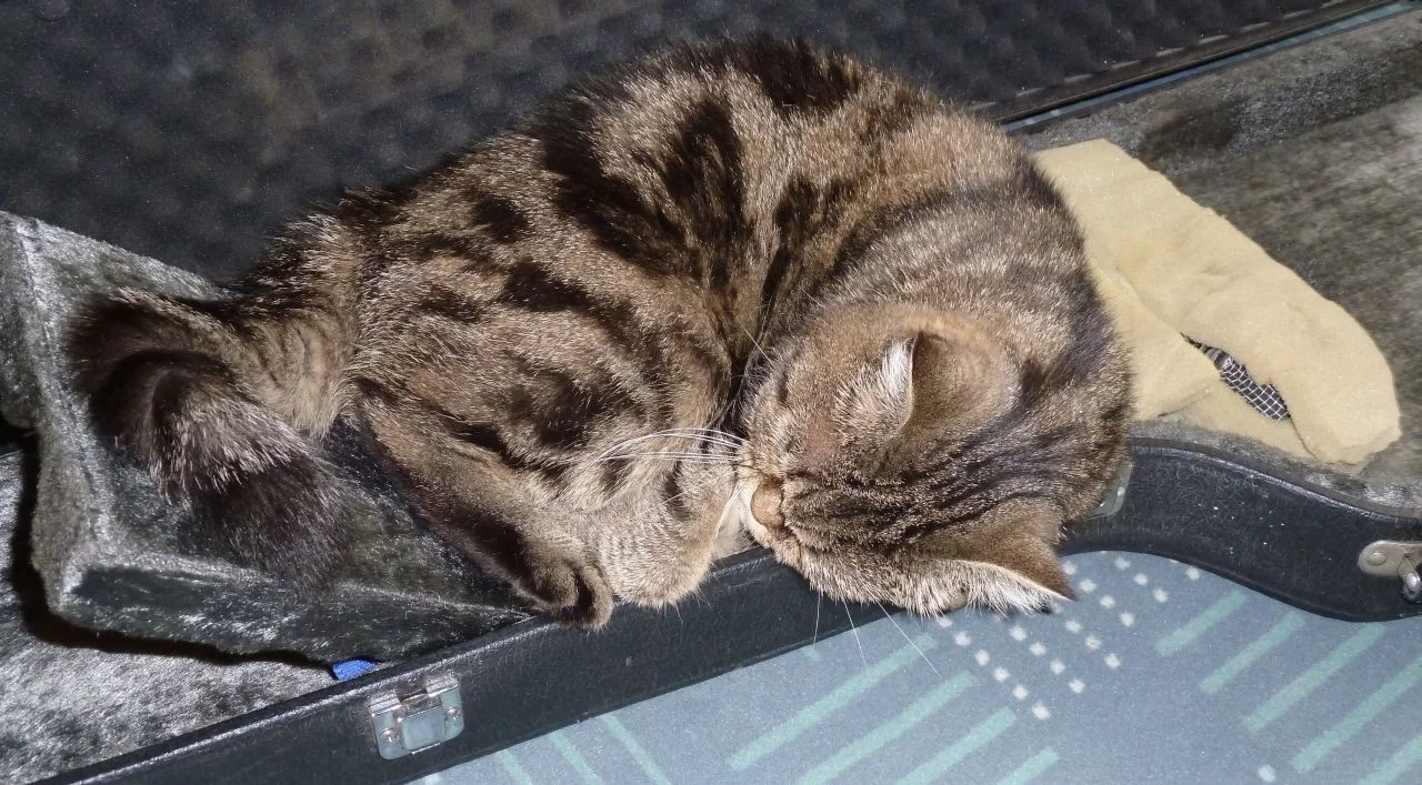 Sind zwei tolle Katzen! Die haben meistens die Ruhe weg, sind irgendwo in der Nähe, oder auf dem Schoß, oder in Kartons, Gitarrenkoffern, Wäschekörben, schlafen, fressen, putzen sich, oder beobachten...
