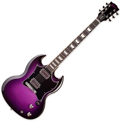 Das wäre ne Gitarre in lila, allerdings natürlich ne Strat :). Alte Ibanez (RG 550 und so) kriegt man manchmal auch in seltsamen Farben, da hilft nur Ebay durchstöbern
