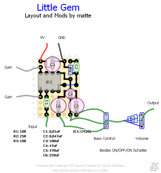 Also, ich habe mir den Little Gem nach dem Schaltplan von runoffgroove gebaut - guckst du hier. Der wahrscheinlich beliebteste Selbstbau-Amp für den DIY-Einsteiger
