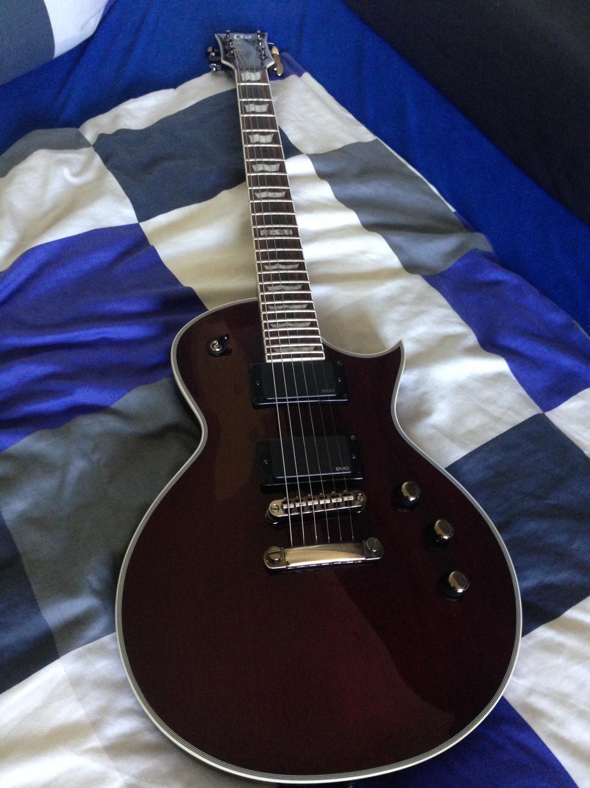 ich habe immernoch meine erste Gitarre, eine LTD M200 (wird garnicht mehr gebaut). Ist jedenfalls ne typische Mirage, Baujahr 2006, 24 Bünde, HH und nun ganz wichtig: Ein Licensed Floyd Rose.