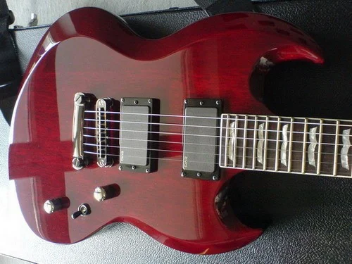 Bei der MMV ist die Buchste am unteren "Horn" und das ist ziemlich unpraktisch. Aber anderer Seits hat sie 2 PUs und der Hals ist eingeleimt...hmmm...