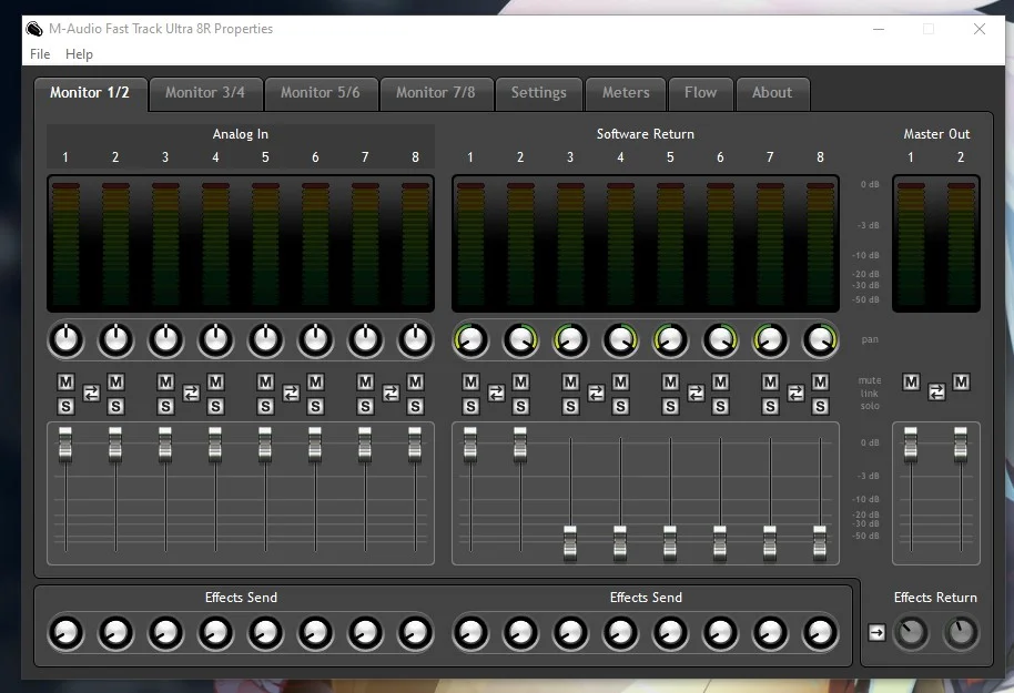 Dafür habe ich von einem Kollegen für einen obligatorischen Euro das oben genannte Interface bekommen, an dem ich nun meine analogen Klangerzeuger anschließen wollte. Dabei ist mir aber aufgefallen, dass ich mit den Gain-Reglern an der Vorderseite die einzuelnen Kanäle nicht einpegeln kann. Ist das nunmehr "normal" für das Gerät oder ist es vielleicht defekt?