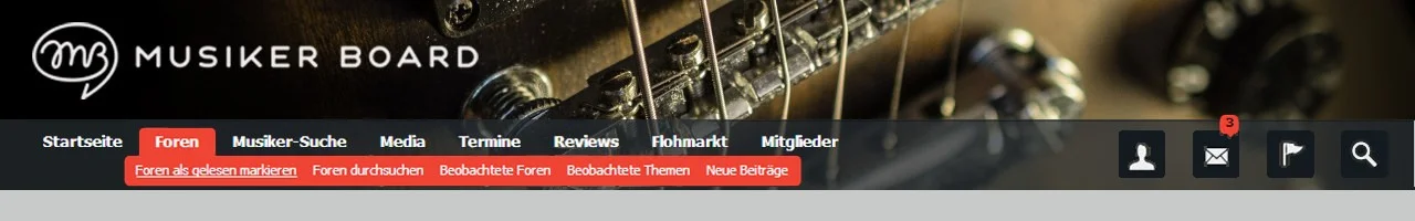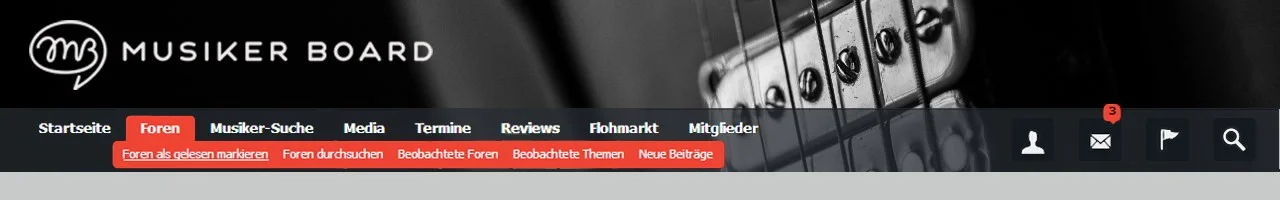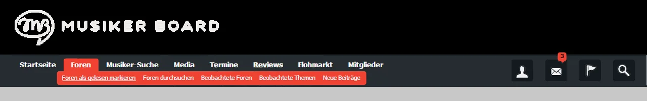 Das habe ich nicht gemacht, weil viele Leute das Logo für ihre Webseiten klauen... die kriegen dann noch gebacken, es umzufärben, aber nicht, einen Schatten sauber freizustellen...Wenn das "MB MUSIKER - BOARD" Logo im Header eine dezente schwarze und nach rechts verlagerte Verschattung hätte würde es mehr Tiefe