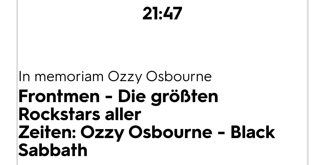 Jetzt mit 58 bin ich wohl bereit mich auch für die Geschichte von Black Sabbath zu begeistern oder was Ozzy dann als Solo Künstler gemacht hat. Ja klar , ich spiel ja auch auf der Gitarre Sachen wie Crazy Train (zumindest die Rhytmusgitarre) oder Paranoid etc.