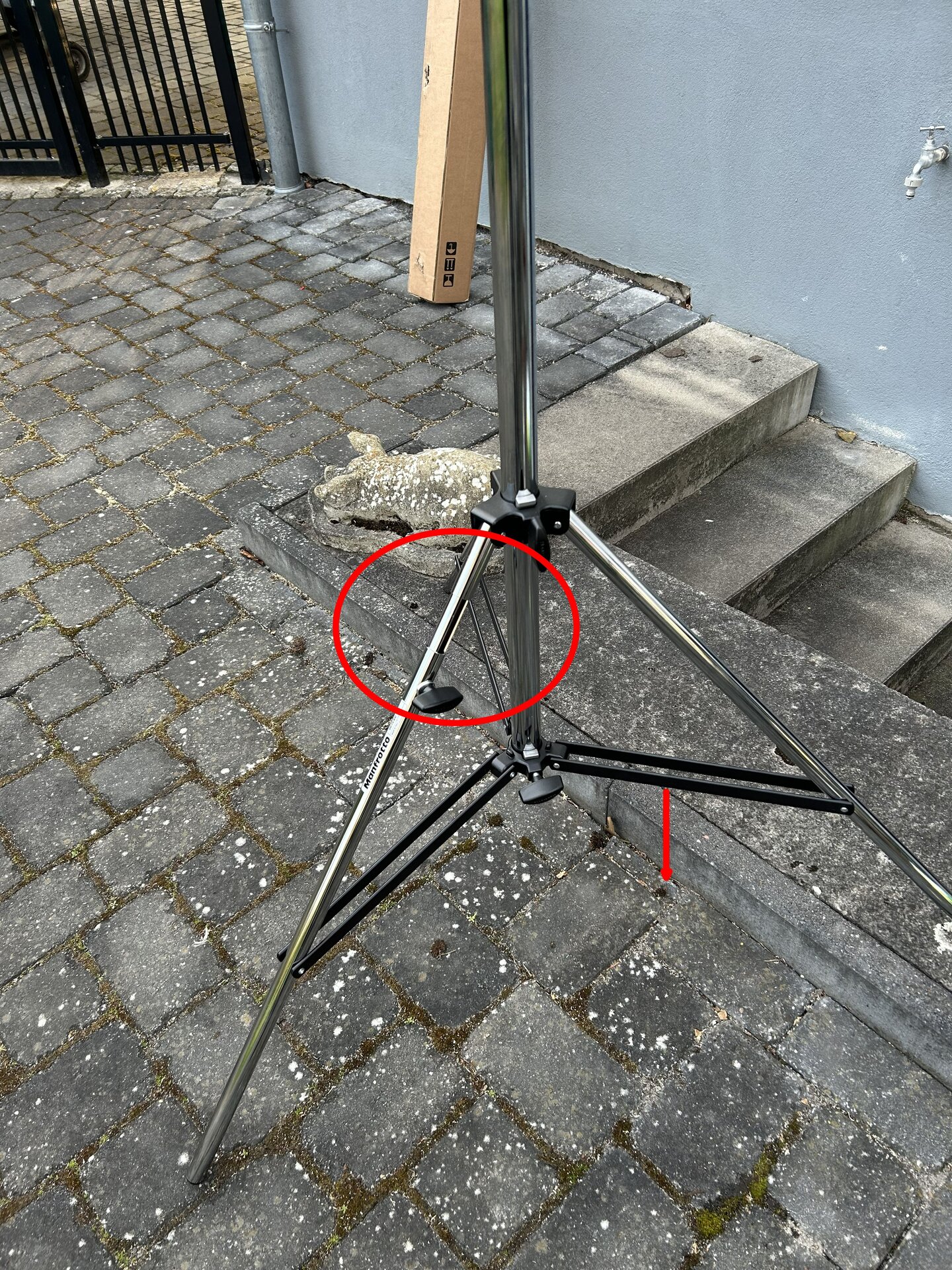 Lediglich hätte ich mir Sicherungsstifte oder einen zweiten Ring zur Sicherung gewünscht, um ein unbeabsichtigtes Zusammenklappen zu vermeiden. Auch nicht schlecht wären Löcher in den Füßen, wie ich es bei anderen Stativen schon gesehen habe, wo man die Füße mit Schrauben in einem Holzfußboden sichern kann, was zwar natürlich nicht überall geht, aber z.B. bei Festzelten problemlos machbar ist, wo der Boden eh gerne mitschwingt, was sich auf die Stative übertragen kann.