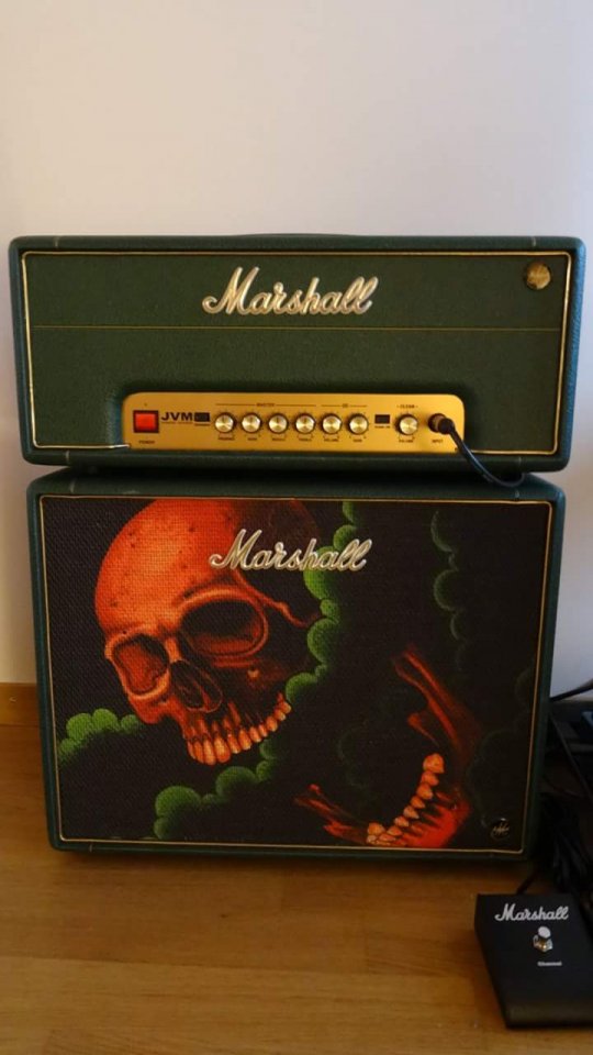 Eigentlich reicht das Gain für klassischen und auch modernen Metal aus. Ich habe, grade für klassische Heavy Metal Sachen wie Metallica, Motörhead und Maiden auch immer recht wenig Gain benutzt. Mit meiner Les Paul mit 57 Classics (plus) hatte ich das immer so zwischen 9 und 10 Uhr, Resonance aus, Bässe komplett raus, Mitten 12 Uhr und Höhen 13 Uhr. Das hatte genug Fleisch, genug Zerre und hat auch nicht gematscht, Box ist eine Laboga 2x12" mit V30 und T75. Habe ebenfalls in der 0,1 Wattstellung gespielt. Effekte habe ich dafür keine benutzt, das ging auch so wunderbar. Das, was "die damals" mit heißgemachten JCM800/Plexi rausgeholt haben, geht mit dem JVM1 (und auch einem 2XX oder 4XX) ziemlich gut ohne.