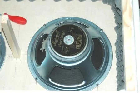 klingt seltsam ...die Überschrift🙂-Also : ich experimentiere seit einiger Zeit mit diversen Boxen und Speakern.Ich spiele einen Fender Super Sonic als Top.Zu Hause im Keller steht eine 4 x12 mit Greenbacks-bis jetzt meine Favoritin.In der Wohnung habe ich diverse 1x12 Boxen (offen) mit Celestion T-75,M70,S 50 und Eminence Speakern.Im Proberaum nutze ich aus Platzgründen eine 1x12" mit einem 150 Watt RMS speaker von Eminence.Da mich immer schon die originale Box zum Super Sonic interessiert hat,hab ich sie einfach nach den original Maßen nachgebaut und mal alles ausprobiert,was an Speakern verfügbar ist.Ganz gut haben mir 2 alte S 50 gefallen(weiche dicke Mitten,nicht sehr bassig).Letzter Stand war ein V 30 16 Ohm mit einem T-75 16 Ohm.Zufälligerweise hab ich bei Eb.. 2 Speaker aus einer Marshallbox ersteigert : Marshall G 12 und einen Marshall G 12 Vintage,beides von Celestion hergestellt.Momentan bin ich nur noch begeistert von dem Sound :knackige Bässe(ich habe die Box gedämmt),Mitten,die ich bisher nur in der Kombination mit Marshallamps gehört habe und sehr filigrane Höhen,schöener als die Höhen der Greenbacks.Ich gehe davon aus,daß die Speaker speziell für Marshall gefertigt werden,mit dem normalen V 30 hat das wenig gemeinsam.Wieso ist Celestion nicht in der Lage,solche Speaker selbst anzubieten???Und warum verkauft man sowas wieder??Auf diese Klangnüancen hab ich lange gewartet.