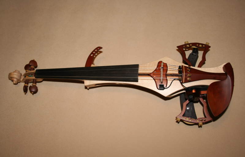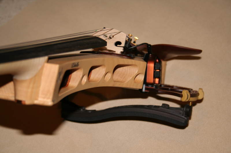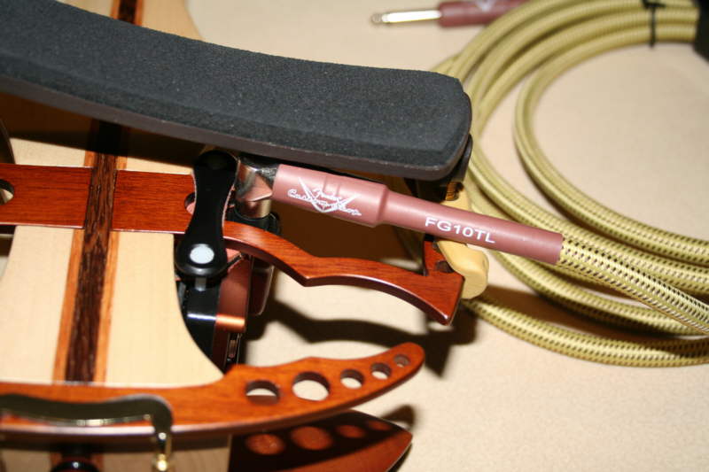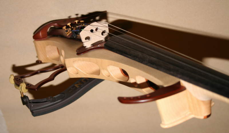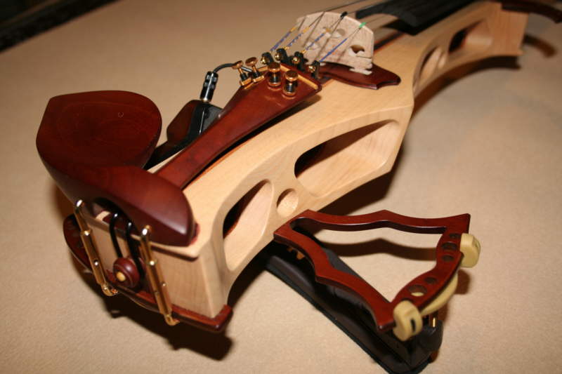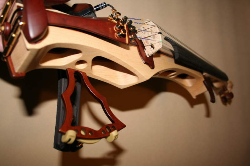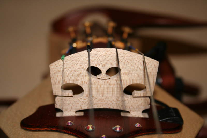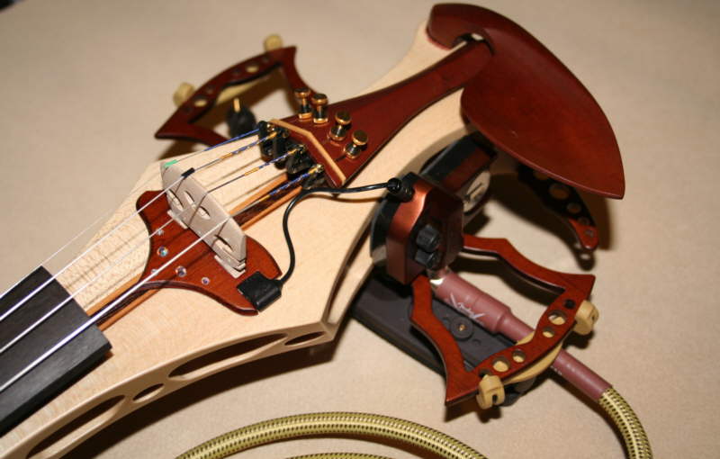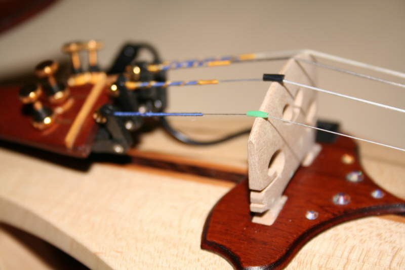 Als ich weiter suchte, wurde ich bei Zeta fündig. Die verbauen 2 verschiedene Stege auf den Geigen. Zum einen ein Steg mit je einem Piezo direkt unter der Saite was dann in einem