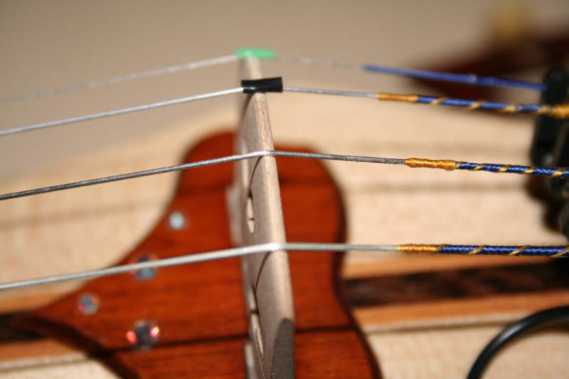 Damit habe ich jetzt einen brauchbaren Erfolg erzielt, da der GfK-Steg dem Klang sogar gut entgegen kommt. Kaum zu glauben, besser als der Holzsteg, da die unnötigen