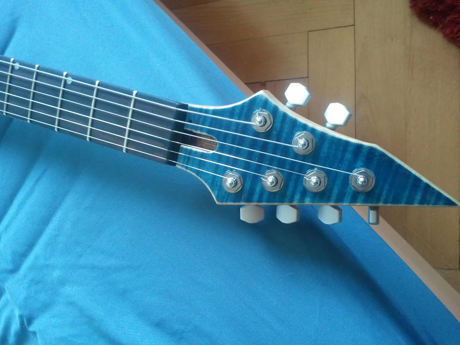 Kopfplatte mit blau gebeiztem Riegelahorn Furnier (Matching Headstock), 2 fach verstellbarer