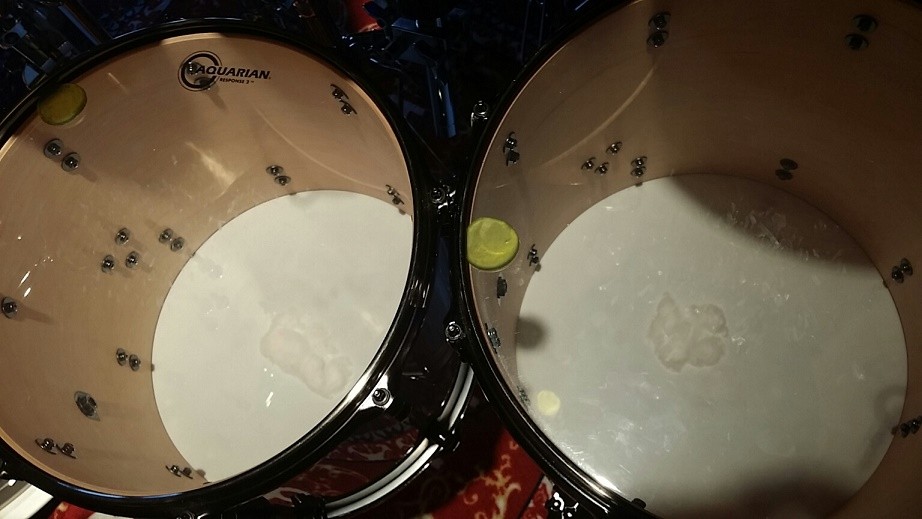 den Drumsets die Tische für die nachfolgende Autogrammstunde aufgabaut wurden ^^.