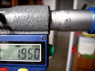 Das Skalenrohr dreht sich mit dem Rändelgriff auf der feststehenden Achse, die oberhalb der Messlinie (mit 0 beginnend) die ganzen Millimeter, unterhalb der Messlinie die halben Millimeter anzeigt. Bei jedem Nulldurchgang des Skalenrohrs stheht dieses entweder genau auf einem Halb- oder auf einem Vollmillimeter. Im Bild wird gerade der zweite Voll-Millimeterstrich sichtbar, ganz sichtbar sind jedoch zwei Striche unterhalb der Messlinie (=1,5mm) zuzüglich der 45 auf dem Messrohr =1,95mm, was die Digitalanzeige bestätigt!