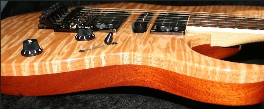 Ach ja, das Gewicht sollte für mich persönlich auch nicht übermäßig hoch sein. Nicht weil ich meine, dass leichte Gitarren immer besser klingen, aber weil es für den Rücken doch deutlich angenehmer ist. Dabei ist mir aufgefallen, dass die für mich am besten klingenden Teile fast immer solche mit mittlerem Gewicht sind (Strats und Superstrats so um die 3,4-3,7 kg, Les Paul 4,0 kg). Die ganz leichten klingen zu Hause meist besser als in der Band. In der hier gefragten Sparte sind die Bodies meist kleiner und die Gitarren eh nicht so schwer, und nach meiner Erfahrung sollte man dann nicht noch auf die letzten paar Gramm schauen, weil das eher nach hinten losgehen kann. Auch ein extrem dünner Hals ist da nicht immer unproblematisch. Charvel baut übrigens seit einiger Zeit Carbonstäbe in die Hälse, wahrscheinlich um das etwas zu kompensieren. Früher haben die immer Quartersawn Maple verwendet, das von Natur aus steifer ist.