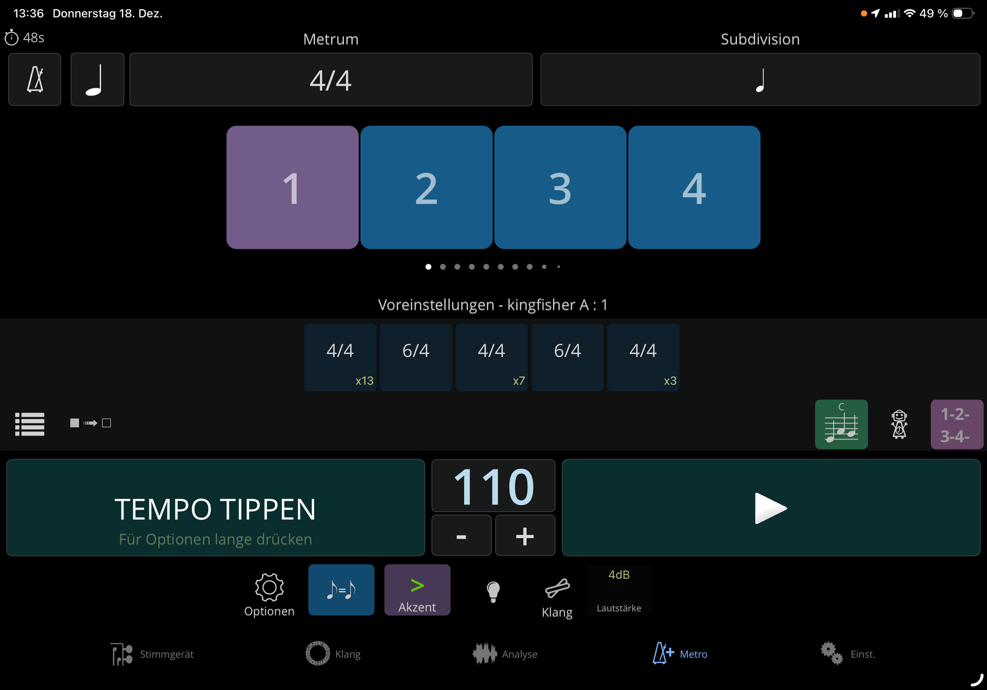 ich suche eine Metronom-Software, mit der ich mir zum üben seltsamer Time-Signatures verschiedene Takarten aneinanderreihen kann und die dann loopen.