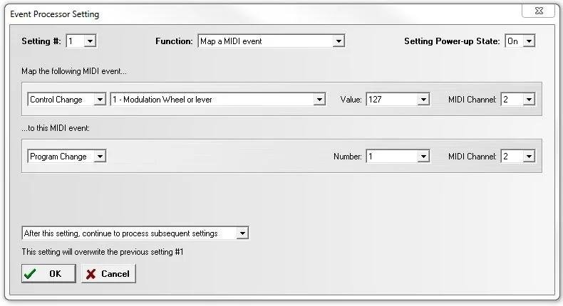 Nun habe ich mir gedacht, ich hole mir einen Event Prozessor der Marke Midi Solutions und wandle einfach zwei oder drei der oberen CCs (Footcontroller) in PCs um und schalte so im H9 hin und her.
