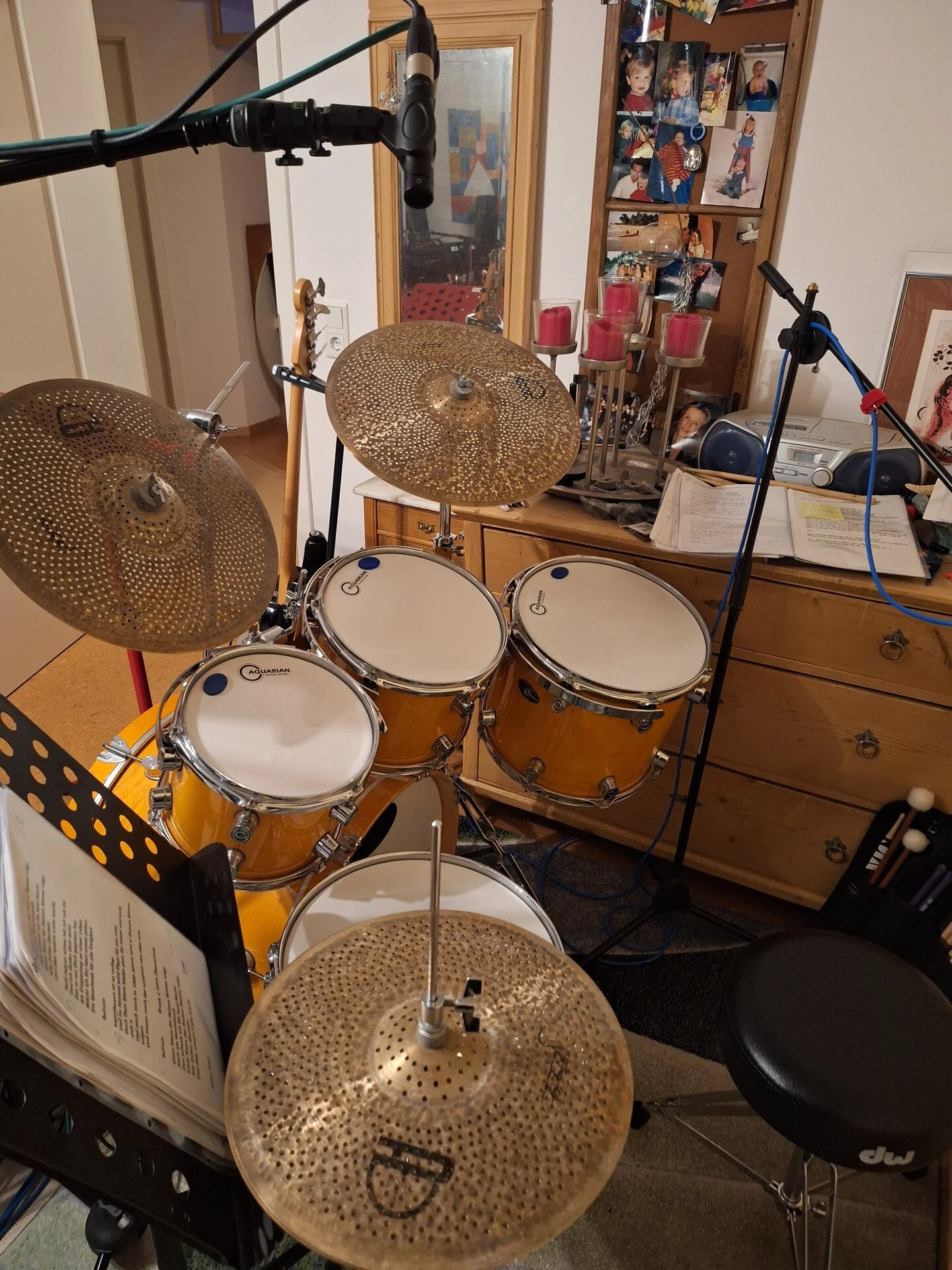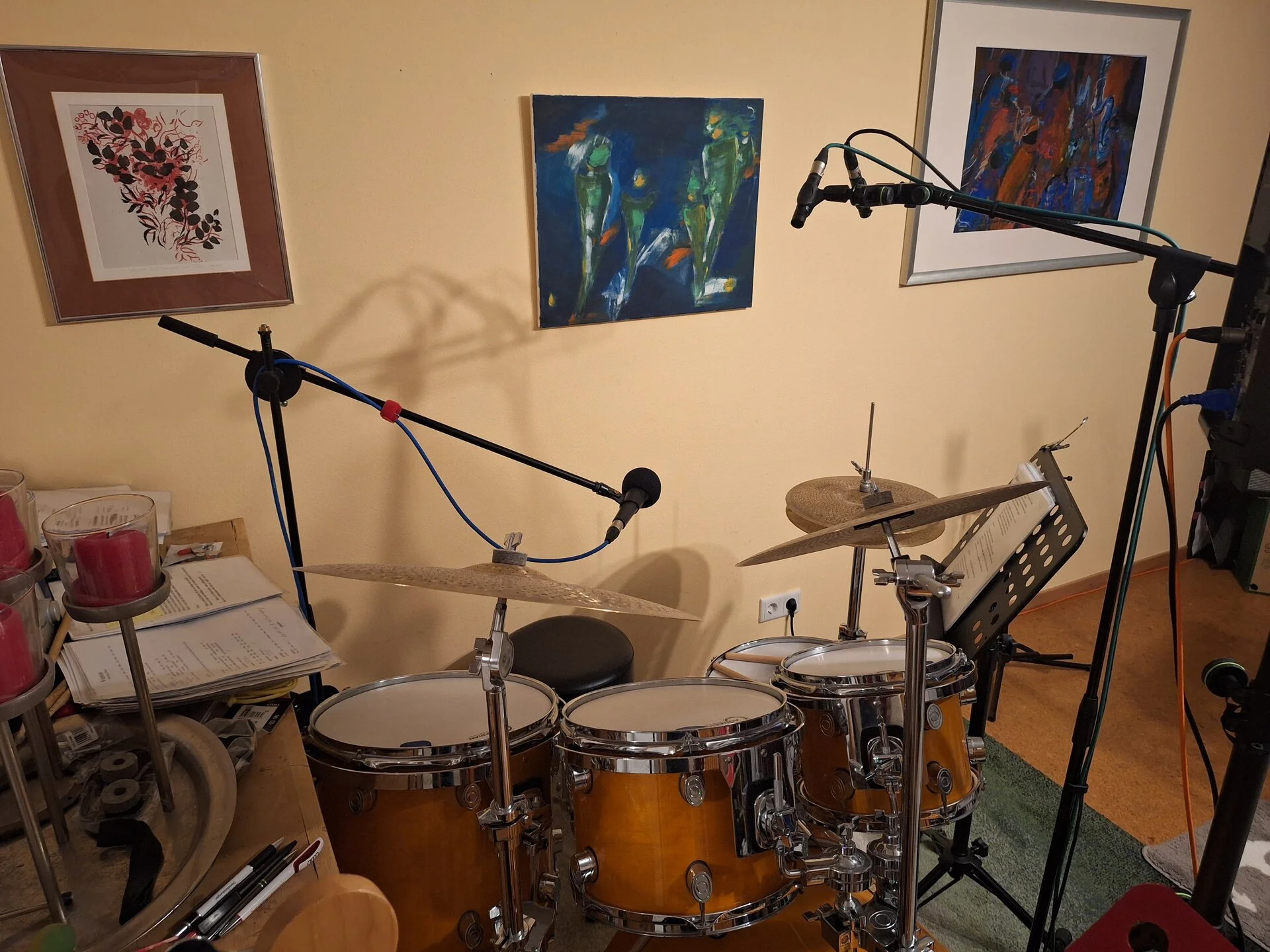 Somit wäre X/Y zur Zentrierung auf's Drum wohl doch die beste Variante, um so wenig wie möglich Fremdinstrumente mit drauf zu kriegen und wenn Stereoabbildung in der Aufnahme eher nachrangig ist. Der Drummer spielt bei unserer Musik eh meist nur Hihat, Snare und Kick, seltener Becken und Toms, und im Live-Setup auf der Bühne würde auch niemand die Drums breit Stereo hören, da dieses ja an einer dezidierten Stelle der Bühne steht und von dort als Ganzes wahrgenommen wird (Drums NICHT über PA bei uns). Somit wird für meine Aufnahmen das Drumset später sowieso auch mittig gepannt, Keys und Gitarren etwas seitlich verteilt, Bass und Vocals auch mittig. Wir spielen auf der Bühne und im Probenraum das Drum akustisch, die Gitarren und Bass über ihre Amps und nur die Vocals und Keys über PA. Die Mikrofonierung der Drums und Gitarren-Amps dient nur der Aufnahme, Bass dafür direkt in's Pult. Aus diesem Setup mache ich ein Multitrack-Recording mit insgesamt 15 Kanälen, dass ich dann in Ruhe in der DAW nachbearbeiten kann oder, da Post-Gain aufgenommen, auch als Virtual-Soundcheck-Spuren verwenden kann.
