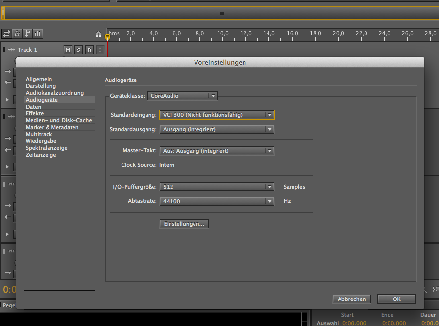 ich möchte mit dem Vestax VCI 300 einen Mix aufnehmen, hierzu benutze ich das Programm Audition von Adobe. Ich komme nicht dahinter, welche Einstellungen ich in Audition hinterlegen muss, damit das Signal vom Vestax VCI 300 aufgenommen wird. Als Eingabequelle habe ich den Einstellungen den Controller angegeben. Trotzdem funktioniert hier nichts - es kann kein Signal aufgenommen werden.