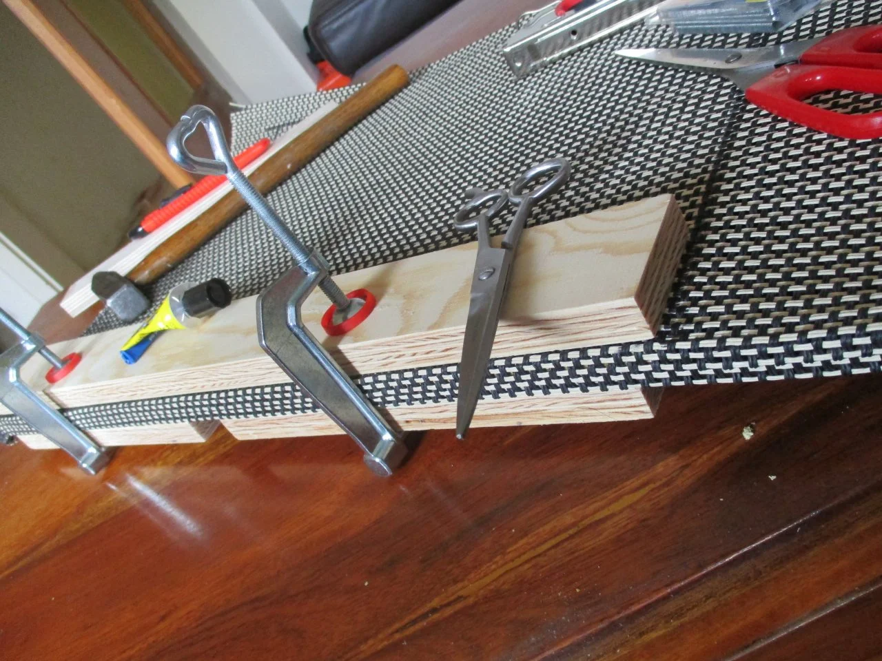 Das Buffle an den Kannten mit doppelseitigen Klebeband bekleben.