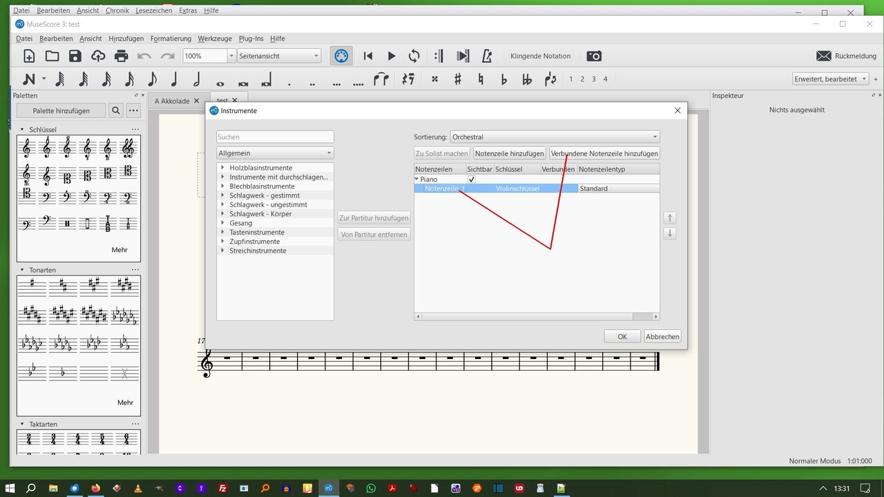 2. Seltsamerweise schreibt MuseScore in einigen Takten über meinen eigentlichen Noten Pausen rein, also quasi als eine zweite Stimme. Möglicherweise hängt das irgendwie damit zusammen, dass unter den eigentlichen Notenzeilen eine Tabulatur eingefügt wurde, in der die Tabs der darüber liegenden Notenzeile eingefügt wurde? Ich habe allerdings nicht darauf geachtet, ob diese Pausen auch vorher schon da waren. Nur so eine Idee.