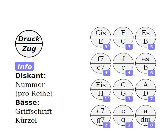 Ohne Plug-ins umschreiben habe ich nur für wenig Stücke gemacht. Wenn ich mit meiner Knopftabelle und mit dem Bild aus der Harmonika-Schule die Griffschrift in Violinschlüssel-Noten übertrage, passieren doch Fehler. Und es dauert sehr lange. Außerdem geht mir die Zählerei auf die Nerven und dann noch aufpassen ob es dann Druck oder Zug ist und noch ob es die richtige Reihe ist. Griffschrift ist schon sehr komplex und ich bewundere jeden, der das so einfach vom Blatt abspielen kann.