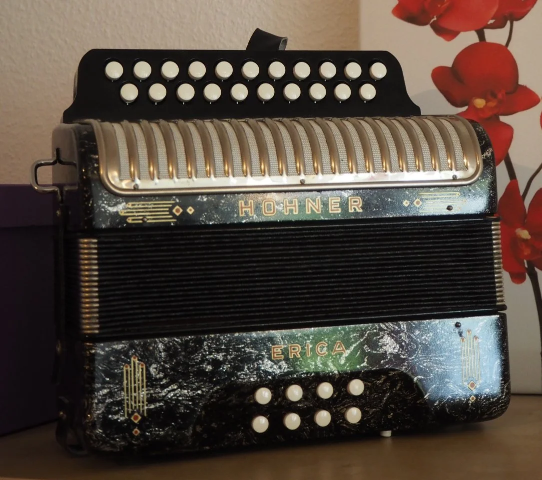 Ich kann endlich mit dem Material aus einem Heft lernen, das für die Erica gedacht ist, und brauche nicht auf anderes unspezifisches zurückgreifen. Das wird dem Instrument besser gerecht. Das ist mir im Moment so wichtig, um den Charakter der kleinen Erica besser zu verstehen. Die Griffschrift hat mich verwirrt. Weil ich auch Piano-Akkordeon lerne und da eben schon genug mit den Noten zu kämpfen habe, hatte ich das Heft nicht mehr verwendet.
