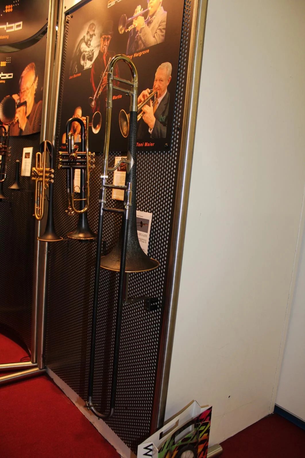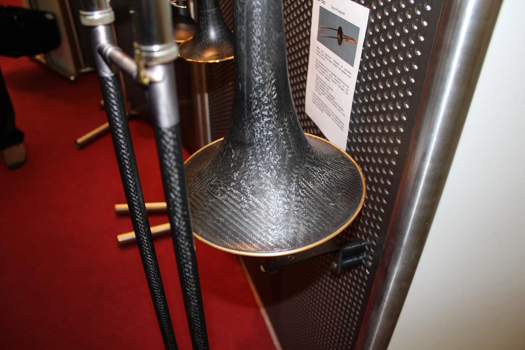 War das eine Amrein? Kannte bislang nur das Schallstück (Amrein) oder den Zug (Haag) aus Carbon. Zusammen ist das sicherlich spannend, auch um heraus zu finden, wie wichtig das Metall wirklich ist. Stichwort Plastikposaune, die kommt an Metall nicht heran. Carbon ist ein hochwertigerer Werkstoff, da hätte ich mehr erwartet als "pappig"...Was ich vorher noch nicht kannt war eine Carbon-Posaune. Klingt irgendwie fast... pappig.