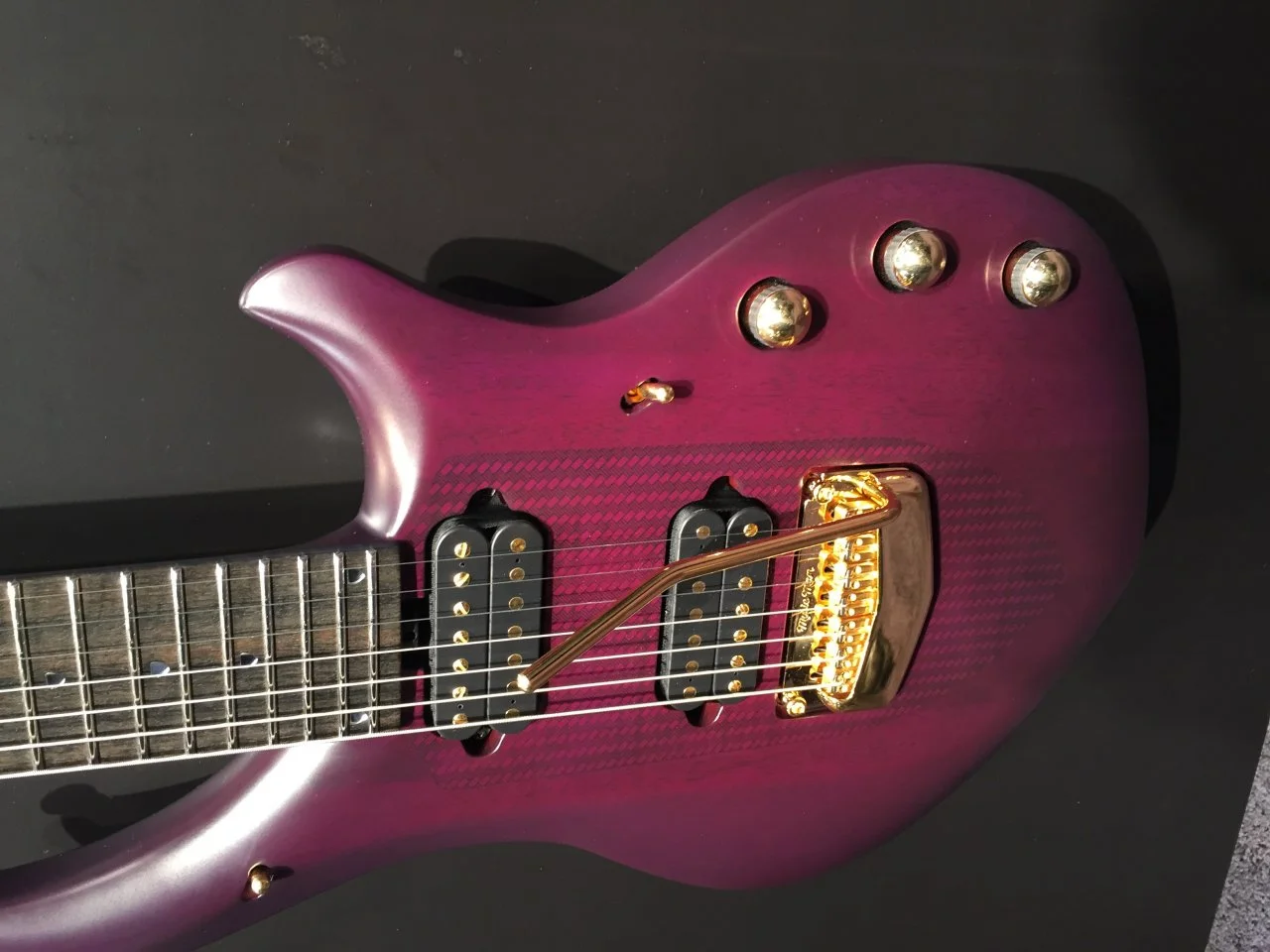 From press release: The Priestess combines modern and classic features, such as: an offset solid mahogany body with a carved raised center cradling 2 Marzi Montazeri custom wound Seymour Duncan pickups which provide unmatched tone and sustain. An Original Floyd Rose Tremolo System with locking nut is built in allowing you to make this axe squeal with delight or dive bomb to the depths of your soul. The mahogany neck sports an ebony fingerboard, split block inlays with custom 12th fret Marzi "M" inlay and super jumbo frets providing classic rock style with modern speed and superior playability. Custom Grover 18:1 tuners make it easy to keep the guitar accurately tuned.
