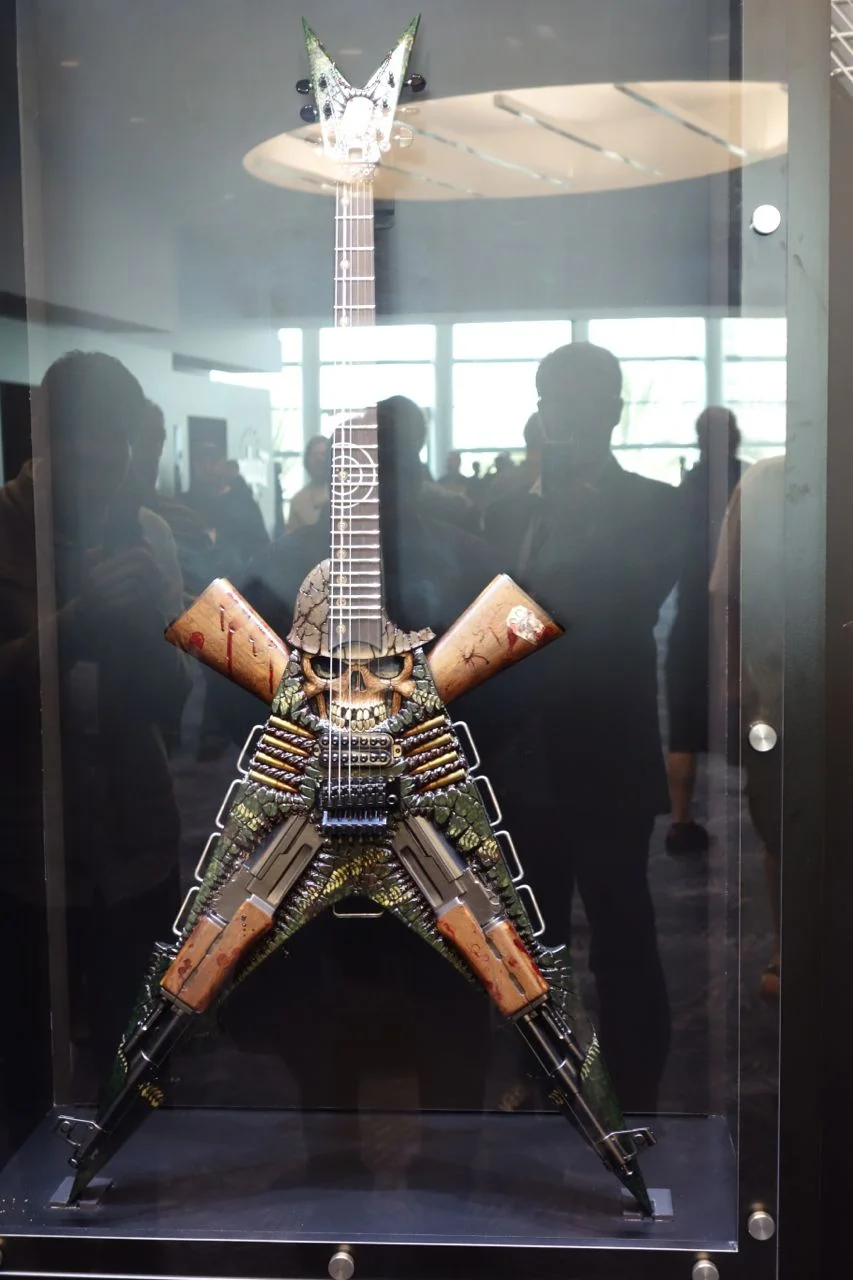 Der Mann heißt übrigens "Satchel" (bzw. Russ Parrish - genialer Typ!) und die Band "Steel Panther". 😉Zu Gibson gehört Kramer und gab es auch die Gitarre zu sehen, die Sachtel von der Hair Metal Band Steel Panthers spielt.