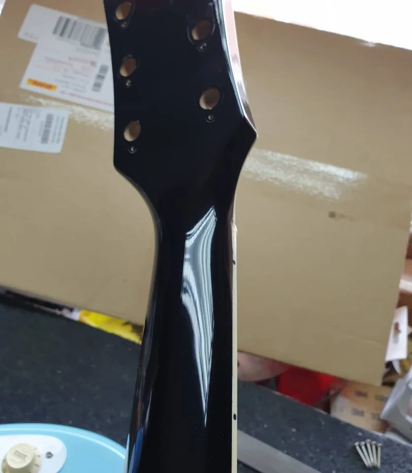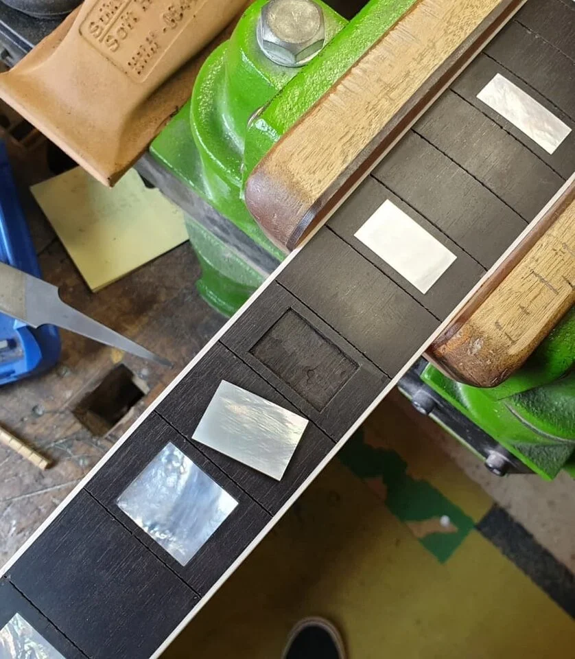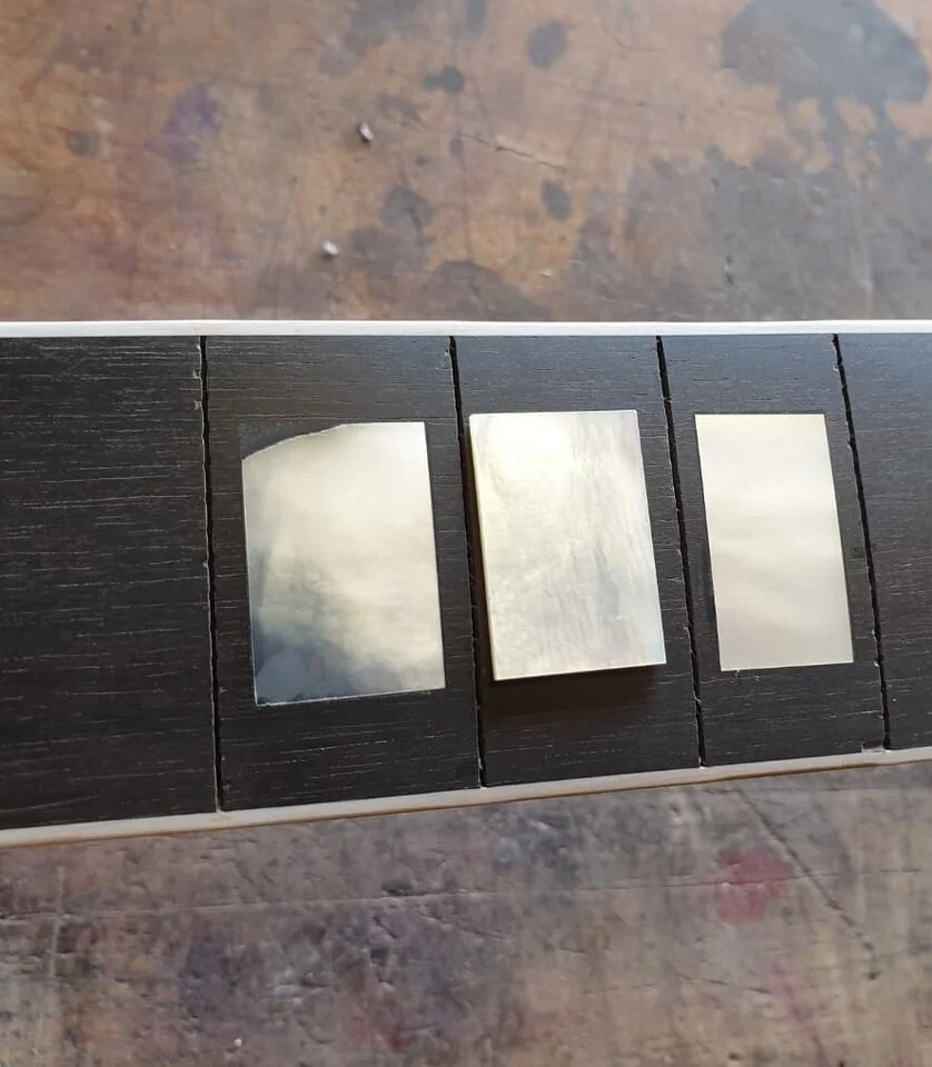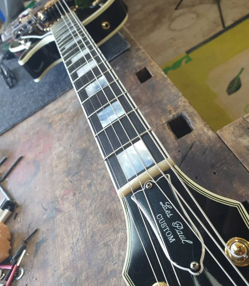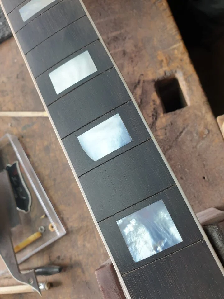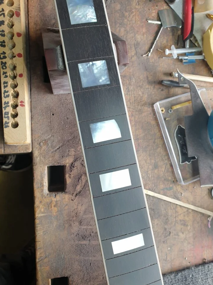 Deine Aussage, dass der Hals vorher auch nicht besser aussah, unterstütze ich. Die Gitarre wurde bereits im Auftrag des Vorbesitzers "repariert" und das nicht sehr gut. Ich habe kein Problem damit, dass beim Abrichten ein Inlay gebrochen ist, der Gitarrenbauer hat mich gleich danach kontaktiert und mir Fotos gesendet. Ich habe eher ein Problem damit, dass ein 2. Inlay ebenso beschädigt wurde, aber das habe ich erst Zuhause entdeckt.