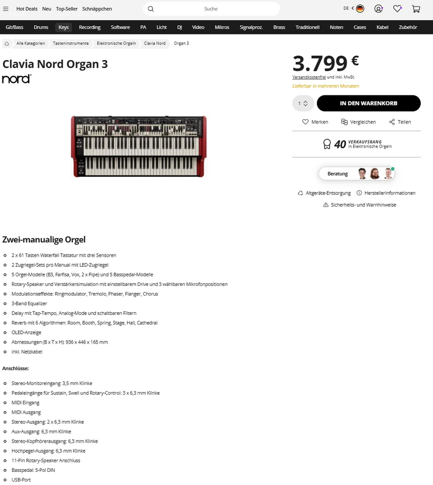 Ich versteh die Strategie von Nord nicht: erst die C2D vom Markt nehmen, nix von Neuentwicklung erzählen und dann die 3 rausbringen...? Selbst Endorser wie Pascal Kravets ist zu Uhl gewechselt, sein Vater JJ hat ja jahrelang Nord Orgeln via Röhrenleslie bei Lindenberg gespielt...