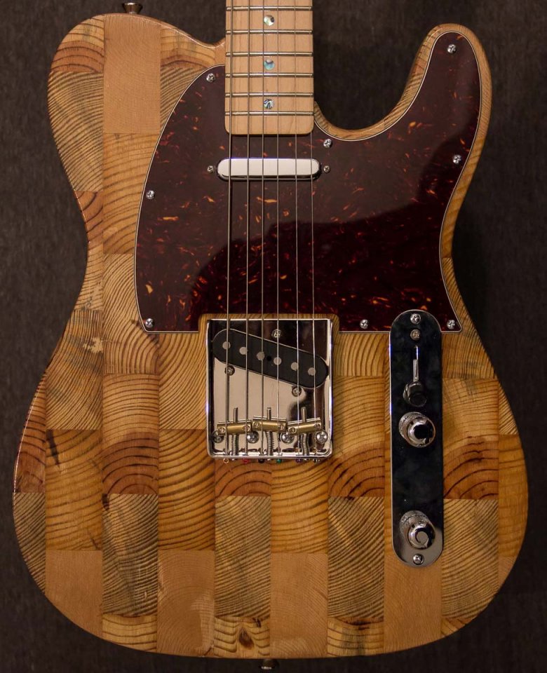 Noch ein Beispiel zum Thema Patchworkgitarren: Wallace Detroit Guitars bauen Gitarren aus Hölzern, die in abrissreifen Häusern gefunden wurden. Leider gibt es nur sehr kurze Klangbeispiele (wegen des kurzen Sustains?).
