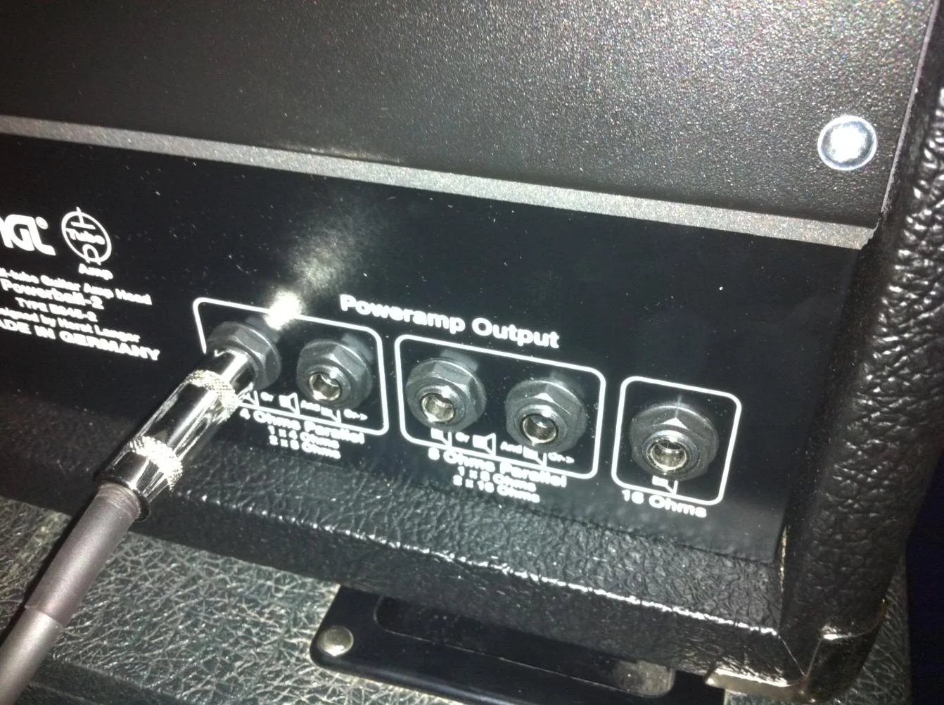 Wo das Boxenkabel im Engl steckt, sieht man... im Speaker steckt es nun im linken Port, also im 4 Ohm Input.