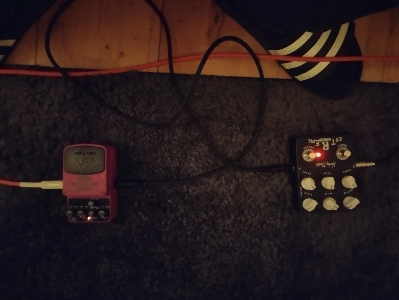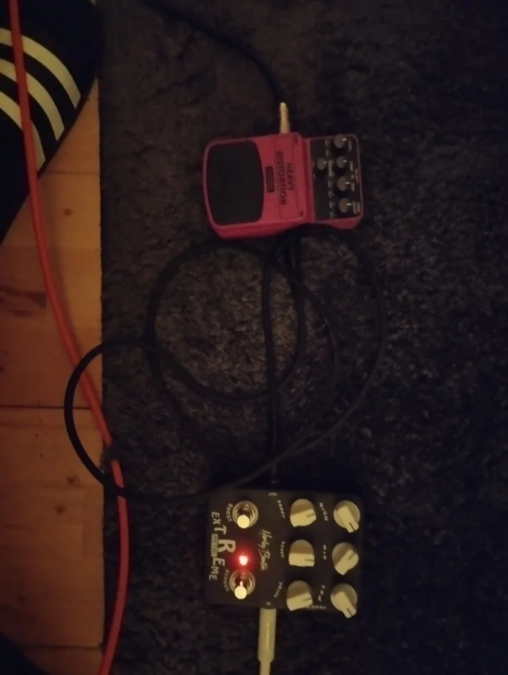 Ich benutze ein Distortion , ein Overdrive und einen Noise Gate. Am liebsten wäre mir den Overdrive an erster Stelle mit leichter Zerre in das Distortion zu Routen und von da aus ins Noise Gate.