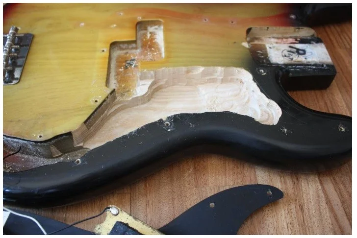 Aber es gibt ein kleines Manko: Der Vorbesitzer des Basses (also nicht der Verkäufer selbst) hat wohl eigenhändig Holz abgefräst, um den Bass leichter zu machen. Damit kommt der Bass jetzt auf 4,3 kg. Da ich beim Instrumentenkauf noch ziemlich unerfahren bin, wäre ich über eine Einschätzung froh - ist das sehr unüblich? wirkt sich das auf den Sound aus? Schmälert es den Wert des Basses sehr?