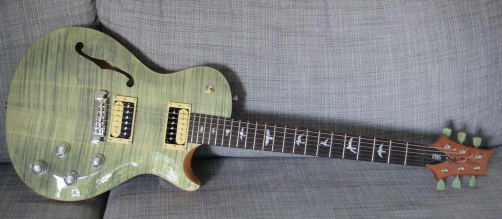 Die Gitarre ist fabelhaft verarbeitet und fühlt sich klasse an, hat auch nen tollen trockenen Sound. Am Amp klingen die Pick Ups ordentlich, sind aber keine Offenbarung. Der satinierte Hals ist zum Bespielen traumhaft - bislang der angenehmste PRS SE Hals, den ich gespielt habe. Der Hals als Wide Thin wäre dann für mich persönlich vermutlich das Optimum.