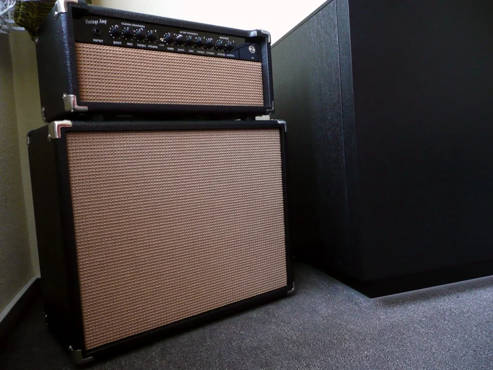 Im Gegensatz zum Test mit dem Jensen P8R, den ich mal angeschlossen hatte, da ich noch kein Cab hatte, braucht das 210er aber schon einiges mehr an Lautstärke, um seine Vorzüge ausspielen zu können. Aber alles kein Problem, für leises Üben habe ich ja noch den Tech21 Trademark 10 mit dem Jensen P8R drin - auch ein tolles Teil.