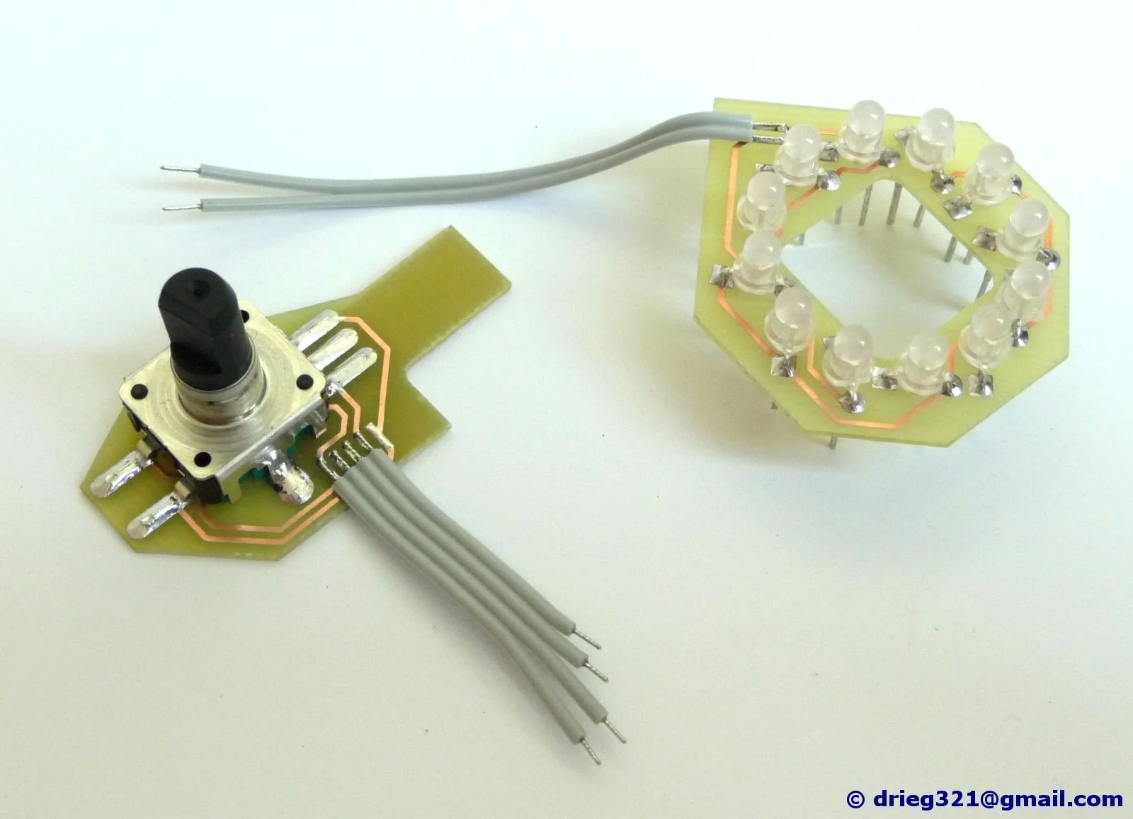 For this purpose I've made two small printed circuit boards (PCB's) - one is carying LEDs and the second with rotary encoder, so all you need is to: