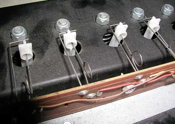 Idealerweise ist es bei meinem Pedal so, daß die Schalter auch schon auf einer Seite zu Achtergruppen zusammengefaßt sind. Wäre das nicht der Fall, müßte man sie eben selber zusammenlöten (Verbindungskabel von Schalter zu Schalter).