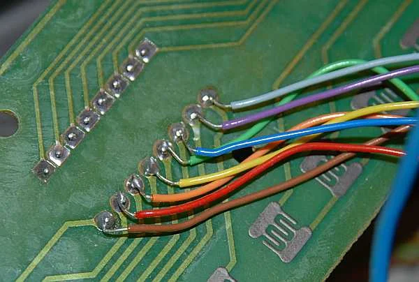 Wie auch immer die vorhandenen Schalter am Pedal aussehen: Es läuft immer darauf hinaus, beginnend beim tiefsten C (auf der Platine ganz links) Ton für Ton bzw. Schalter für Schalter mit geeigneten Stellen auf der Platine zu verlöten.