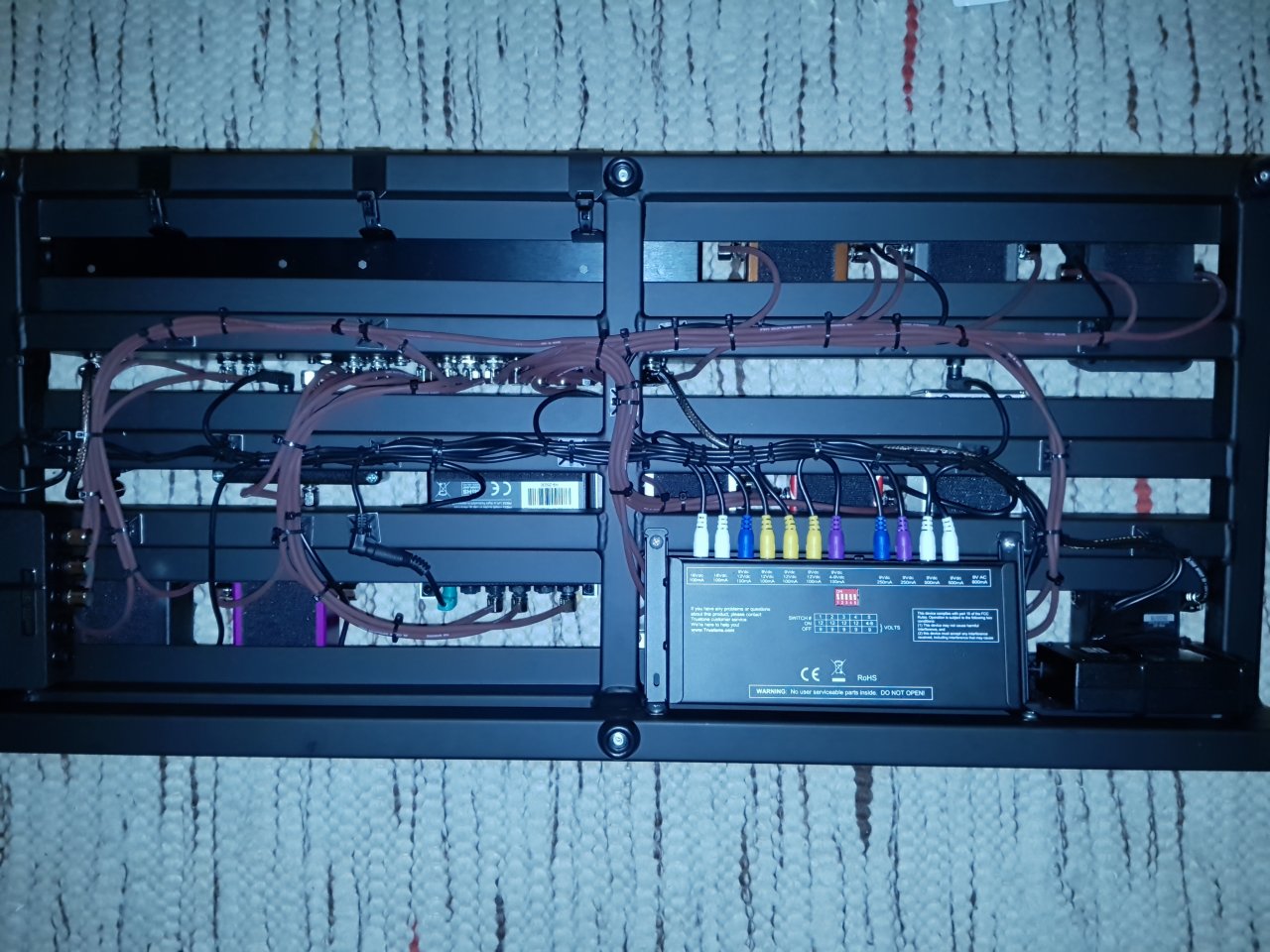 Jetzt stehe ich ein bisschen vor dem Dilemma (jedenfalls denke ich das), dass mein Wunsch-Setup eigentlich nur richtig funktioniert, wenn es mehr oder weniger komplett ist. Theoretisch wäre es vernünftig, mit dem G2 anzufangen, weil da der Grundstein der Stromversorgung mitgeliefert wird - das erfordert aber theoretisch auch das dazugehörige Case, für z.B. ein Pedaltrain müsste ich erst die Befestigung dazu kaufen usw. Fange ich mit einem Pedaltrain an (ohne G2) und stocke erstmal die Effekte auf, bräuchte ich auch erstmal eine andere Stromversorgung, die sich aber preislich zur GigRig-Variante nicht viel nehmen würde (z.B. ein Cioks DC8 schlägt ja auch schon mit 170€ zu Buche). Fange ich mit dem CPB-Case an, ist erstmal auch ein Loch mit der Größe eines G2 auf dem Board...