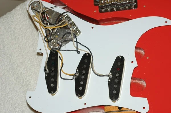 Ich meine, auf diesem Bild meiner gerade erworbenen Strat, sind der Neck- und der Bridge Pick-Up vertauscht.
