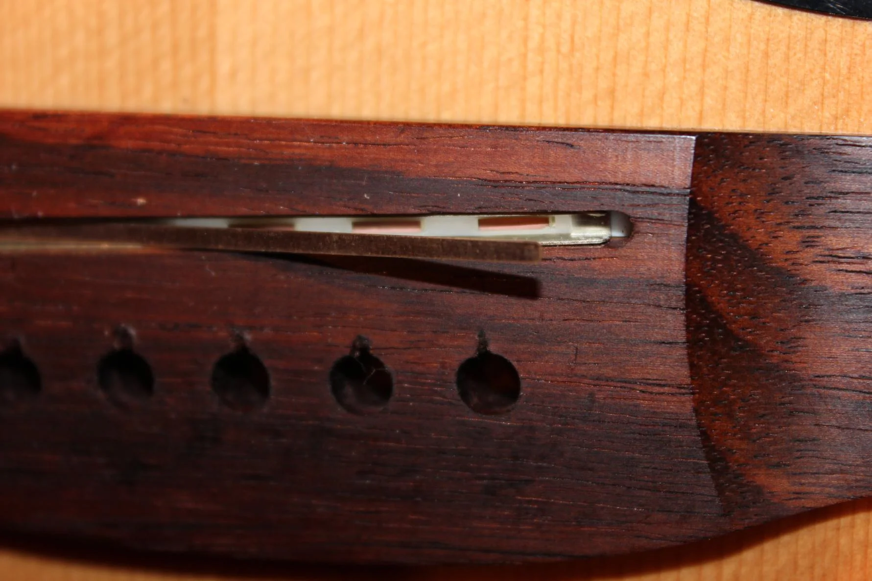 Jetzt lese ich von dem Sinn dieser Stufung, die den ordentlichen Betrieb des Piezos ermöglicht - das ist für mich Neuland - und möchte nicht einfach so drauf los basteln, sondern erhoffe mir von euch Rat, wie ich nun am Besten die Stegeinlage bearbeite, ohne etwas zu verhunzen. Evtl. kann ich mir den Gang zum Gitarrenbauer sparen.