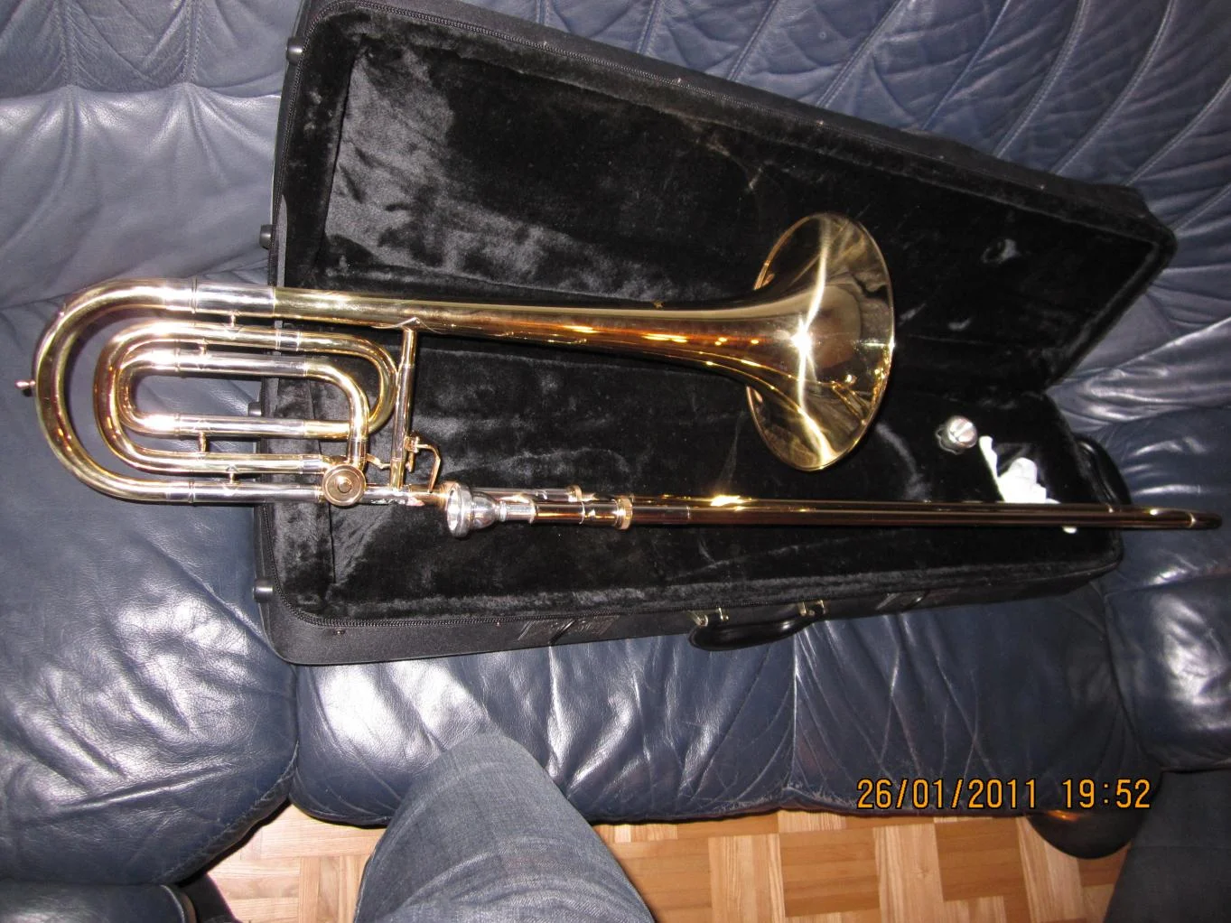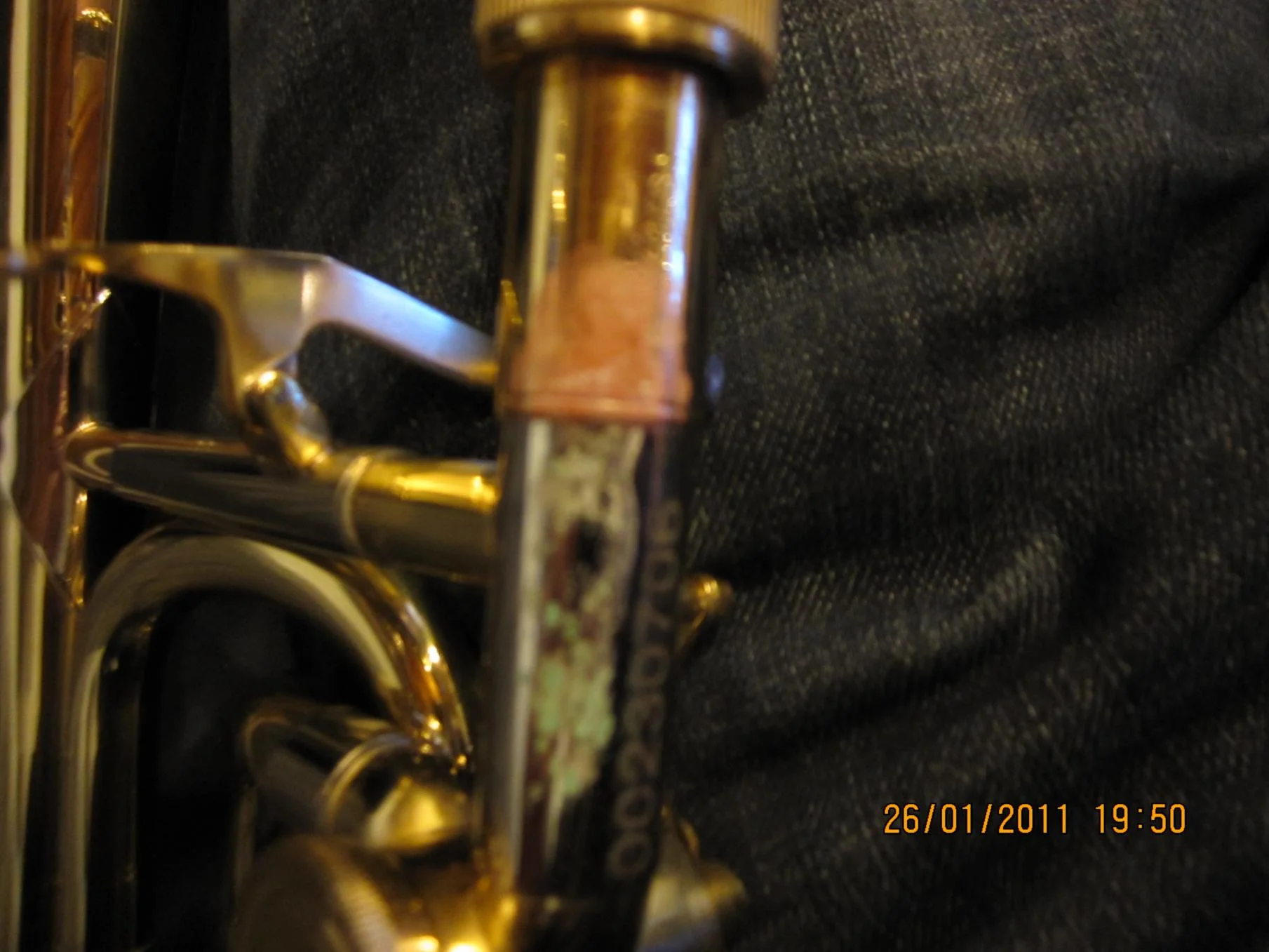 Deine Fotos erlauben keine 100%ige Einschätzung, ich sehe rote Korrosion (= Kupfertrennung aus dem Messing), die das Metall spröde werden lässt. Das passiert an Zügen und Mundrohr praktisch immer von innen nach außen, wenn man nach dem Spielen Feuchtigkeit im Instrument lässt, die nicht verdunsten kann. Hier könnte es aber auch rein äußerlich von Griffspuren stammen, weil der Handschweiß nach dem Spielen nicht (feucht) abgewischt wurde.