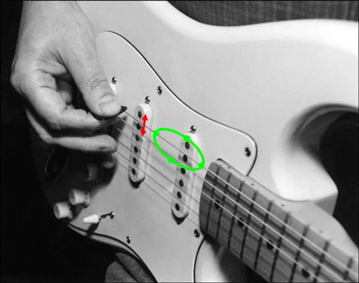 Der Daumen sollte eher gestreckt bleiben, aus Gründen der Lockerheit neigt man immer wieder gerne, das erste Daumenglied leicht abzuwinkeln. Ist keine Tragödie, das Plektrum wird halt dabei den Saiten unparalleler, was im geringem Maße nicht stört.