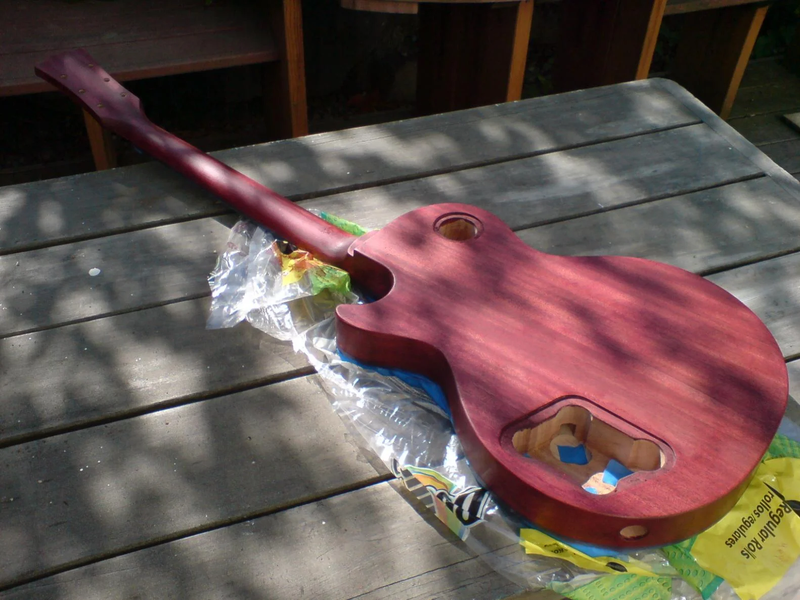 Sollte ich noch mal eine Les Paul artige Gitarre von den Jungs bestellen, dann vermutlich mit Honduras Hals + normalem, 2-teiligem afrikanischen Mahagoni-Korpus mit Kammern - der Ruecken dankt's!