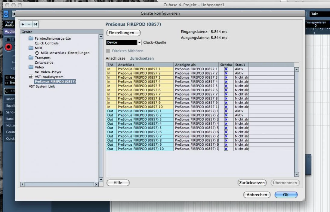 Also, meine Frage: Ich benutze als DAW Cubase 4. Ich wollte letzlich einen Mehrkanalmitschnitt machen - dafür hat das Ding ja auch mehrere Eingänge, doch Cubase zeigt mir immer nur zwei an. Die anderen 8 Kanäle sind deaktiviert. ->habe ich bei der Gerätekonfiguration bei Cubase nach gesehen. Das Problem: wie aktviere ich nun die restlichen Kanäle?