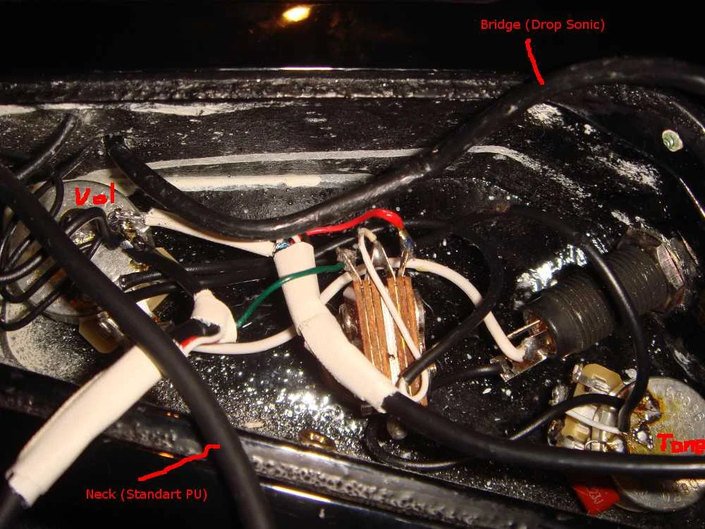 Hallo, nachdem ich vor einiger Zeit bei meiner Jackson Warrior den Bridge Pickup durch einen Dimarzio Drop Sonic ersetzt habe gibt es folgendes Problem: