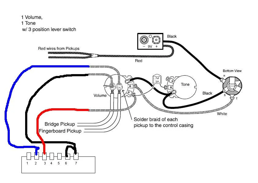 das problem ist das der 3 wege schalter nur 7 lötfahnen besitzt und keine 8 wie auf dem bild wenn ich die gitarre also nun anschliese kommt nur ein ganz leiser sound raus.