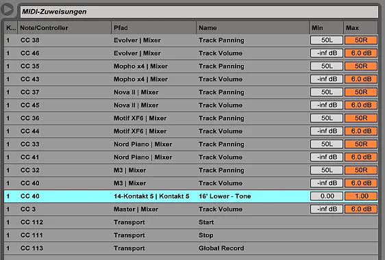 Wenn ich bei der NI Vintage Organs B3 einen Controller (zB einen Slider von meinem Kurzweil PC3 einer Drawbar) zuordne, dann bewegen sich alle Controller, Knöpfe, usw. der B3 synchron mit. Stand Alone funktioniert alles perfekt, das gleiche Kontakt Patch im Ableton Live macht dann diesen Schwachsinn.